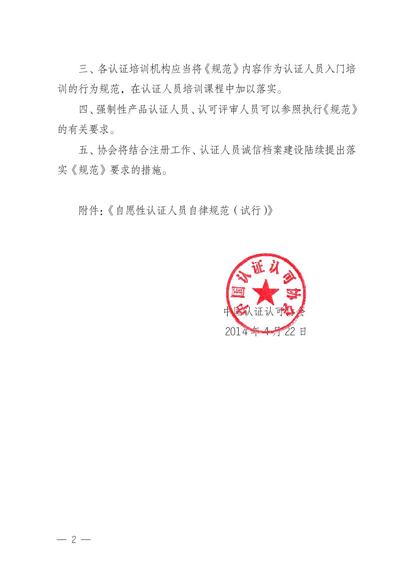 關(guān)于發(fā)布《自愿性認證人員自律規范(試行)》的通知