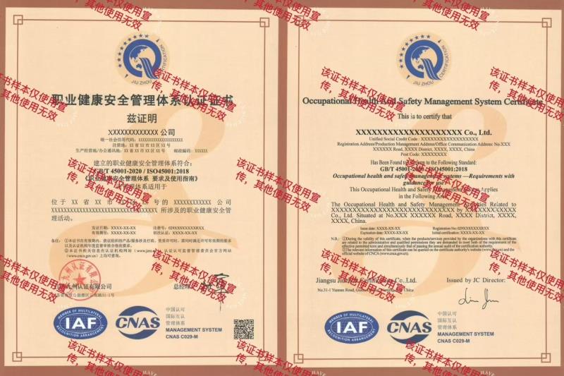 • 職業(yè)健康安全管理體系證書(shū)樣本