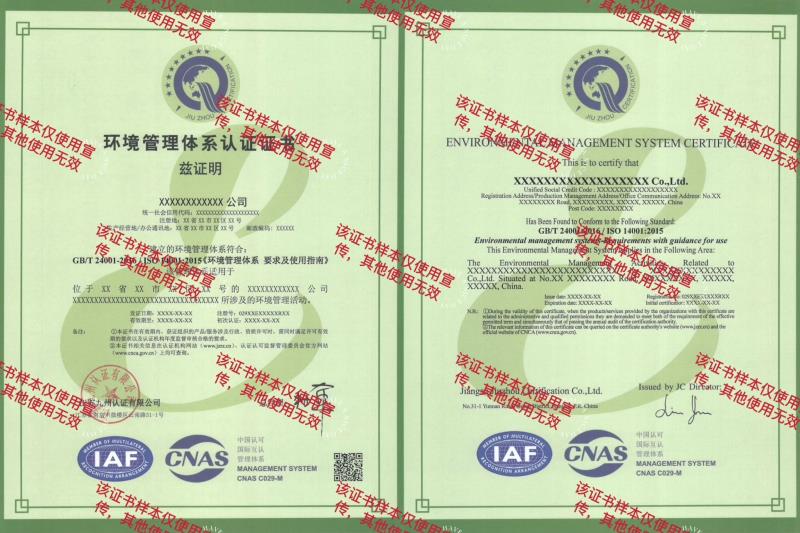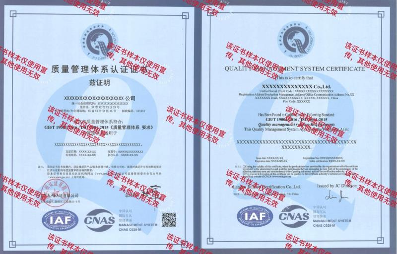 • 質(zhì)量管理體系50430證書(shū)樣本